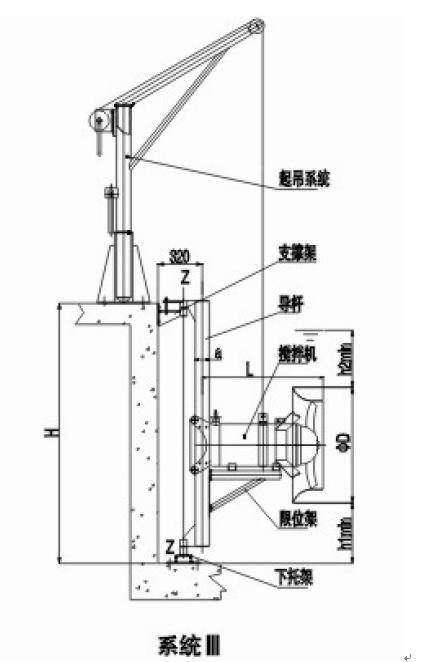 4、當(dāng)H>5m,應(yīng)在安裝系統(tǒng)II、III導(dǎo)桿中間添加一支撐架;